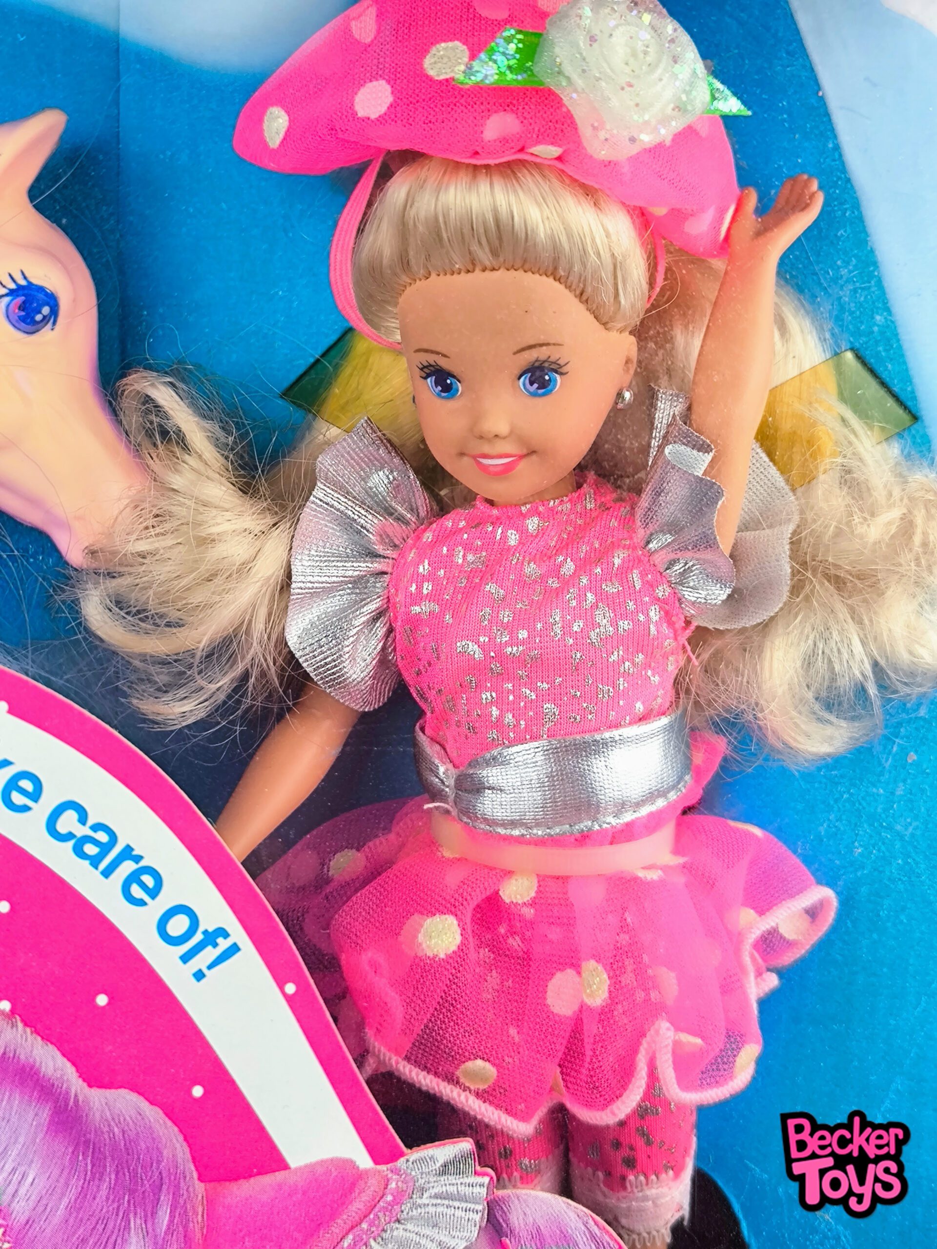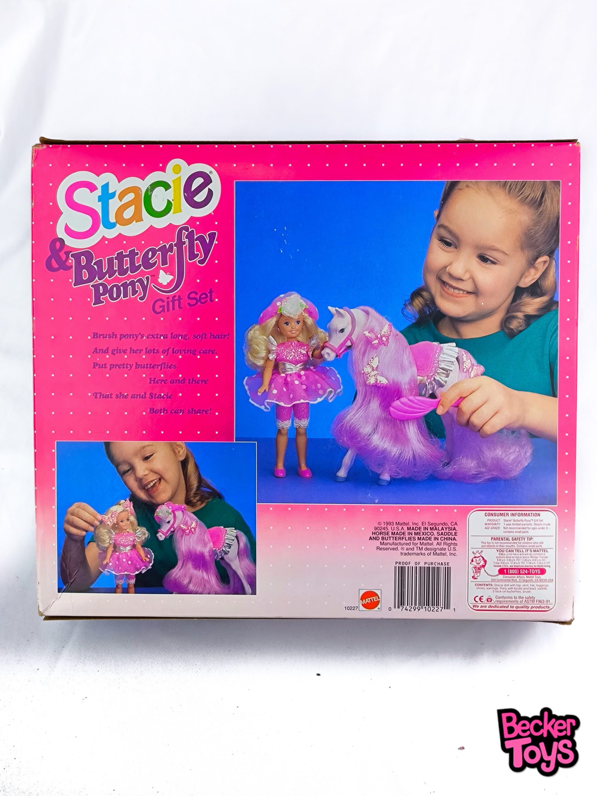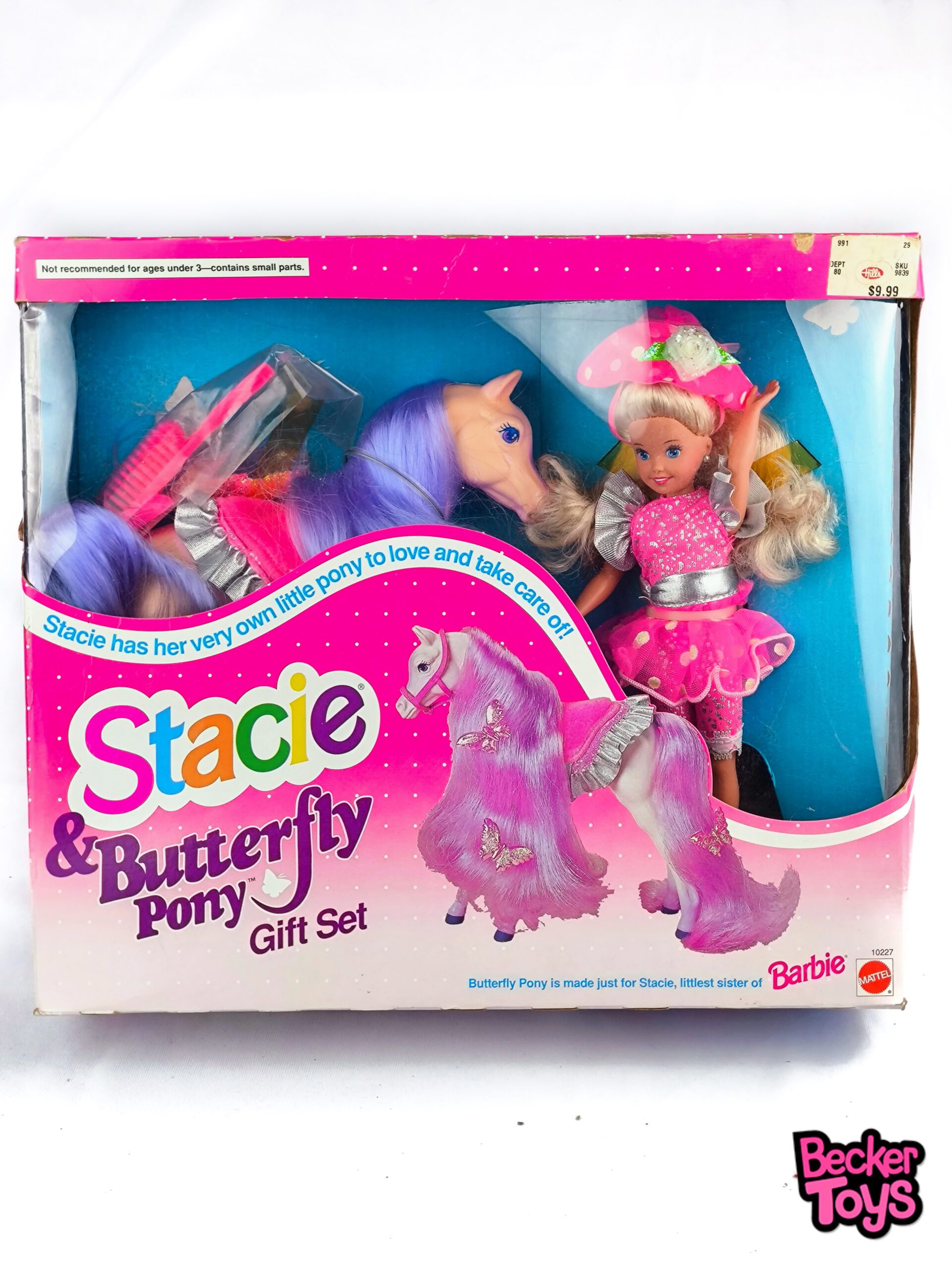 Giftset Barbie de colección – Stacie & Butterfly Pony de 1993. Nuevos, nunca sacados de la caja. Caja dañada.